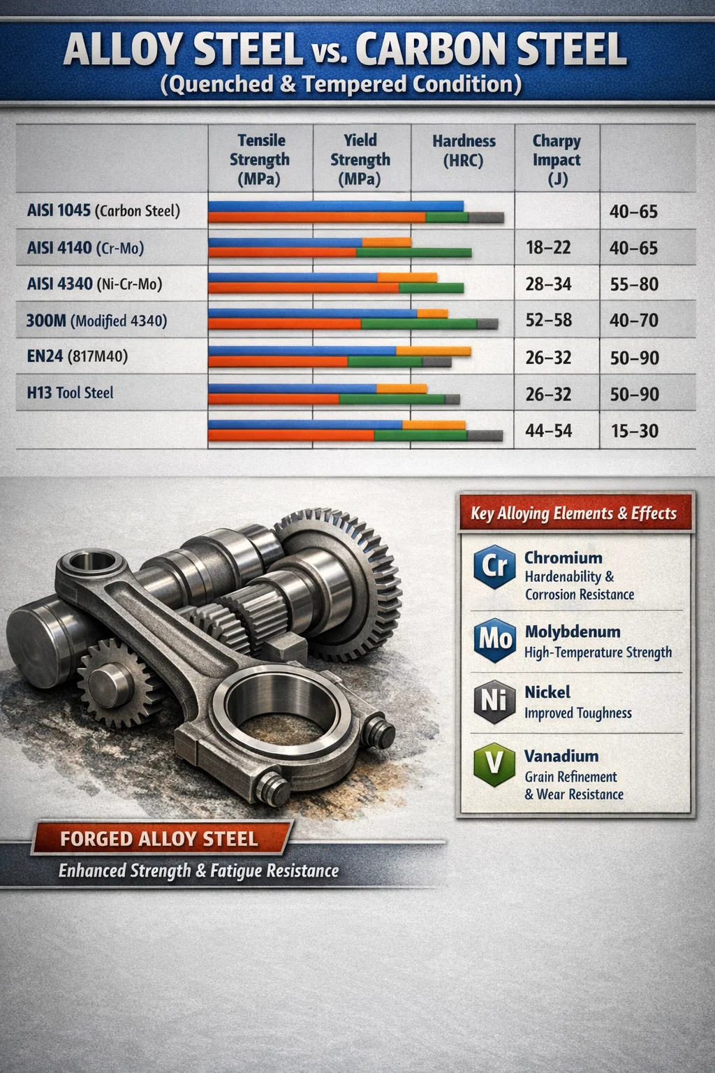 - 8 Wichtige Schmiedesorten von legiertem Stahl und ihre Festigkeitsprofile