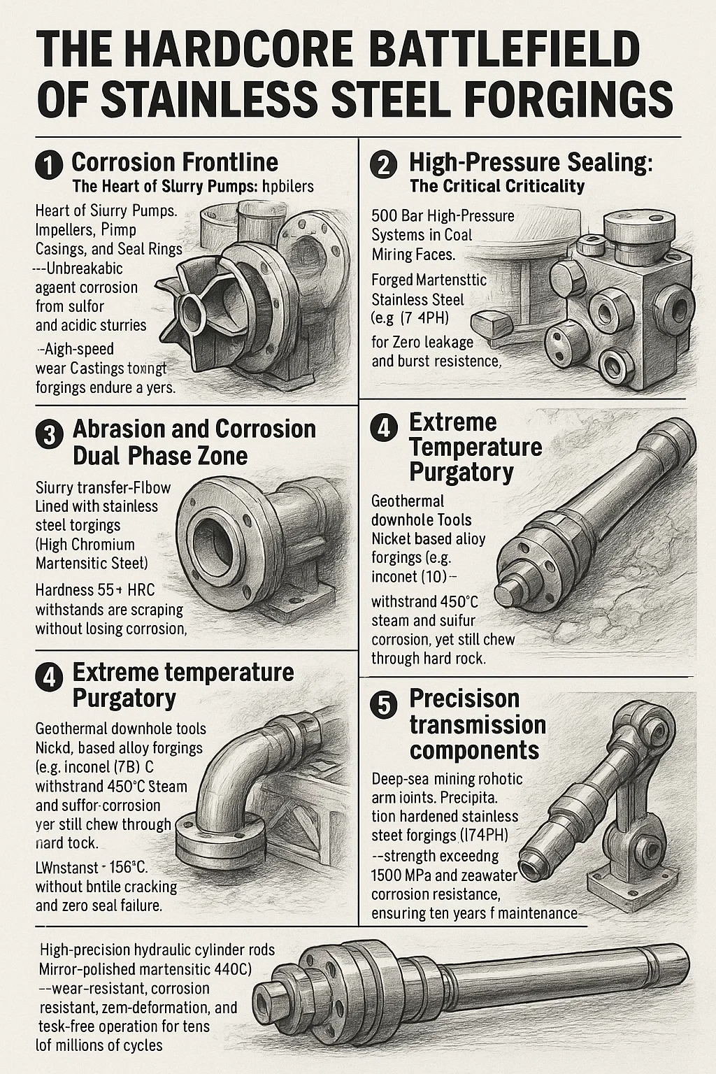 Gelenke von Roboterarmen für den Tiefseebergbau: Ausscheidungsgehärtete Schmiedeteile aus rostfreiem Stahl (17-4PH) – Festigkeit über 1500 MPa und Korrosionsbeständigkeit gegenüber Meerwasser, wodurch zehn Jahre lang wartungsfreie Gelenke gewährleistet sind.