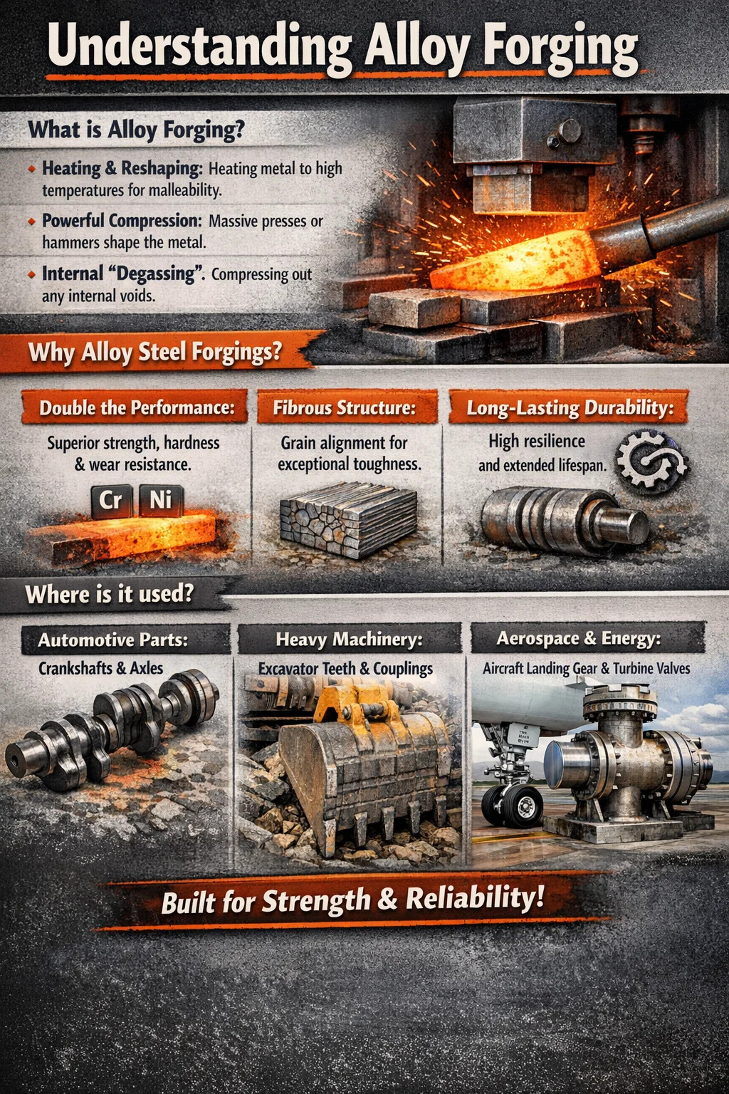 Doppelte Leistung: Gewöhnlicher Stahl ist bereits nach dem Schmieden fest, aber Schmiedestücke aus legiertem Stahl erreichen ein erstaunliches Maß an Festigkeit, Härte und Verschleißfestigkeit, da sie „starke Inhaltsstoffe“ wie Chrom und Nickel enthalten und beim Schmieden weiter komprimiert werden.